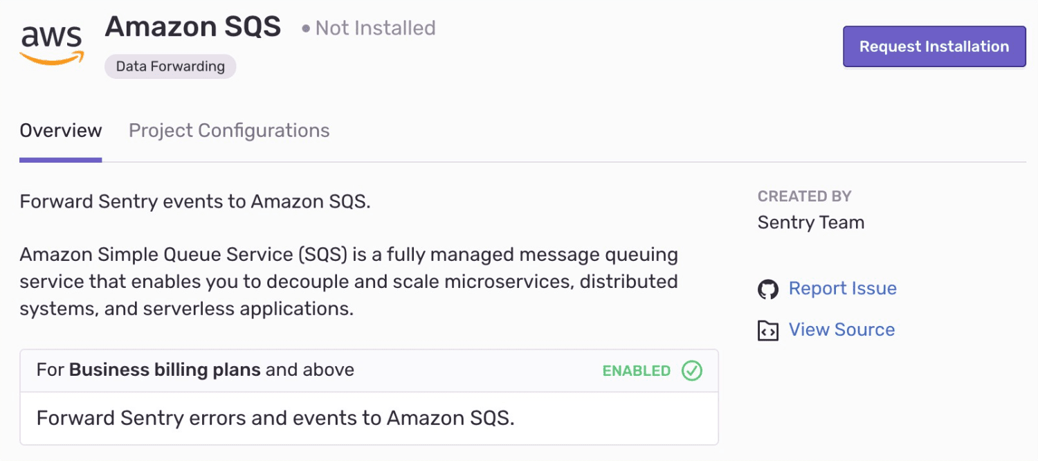 Learn about Sentry's Amazon SQS integration, which allows you to forward Sentry events to Amazon SQS for further analysis.