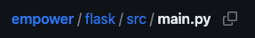 Next, locate the file seen in the stack trace with your source code provider (e.g. GitHub). In this example, the path is flask/src/main.py