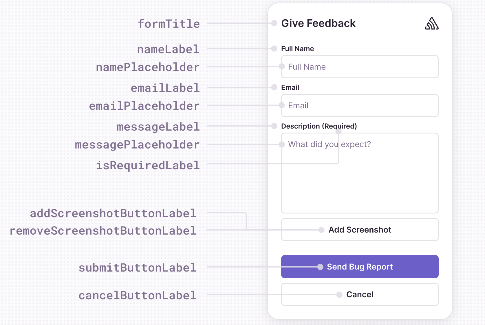 formTitle"Report a Bug"The title at the top of the feedback widget.